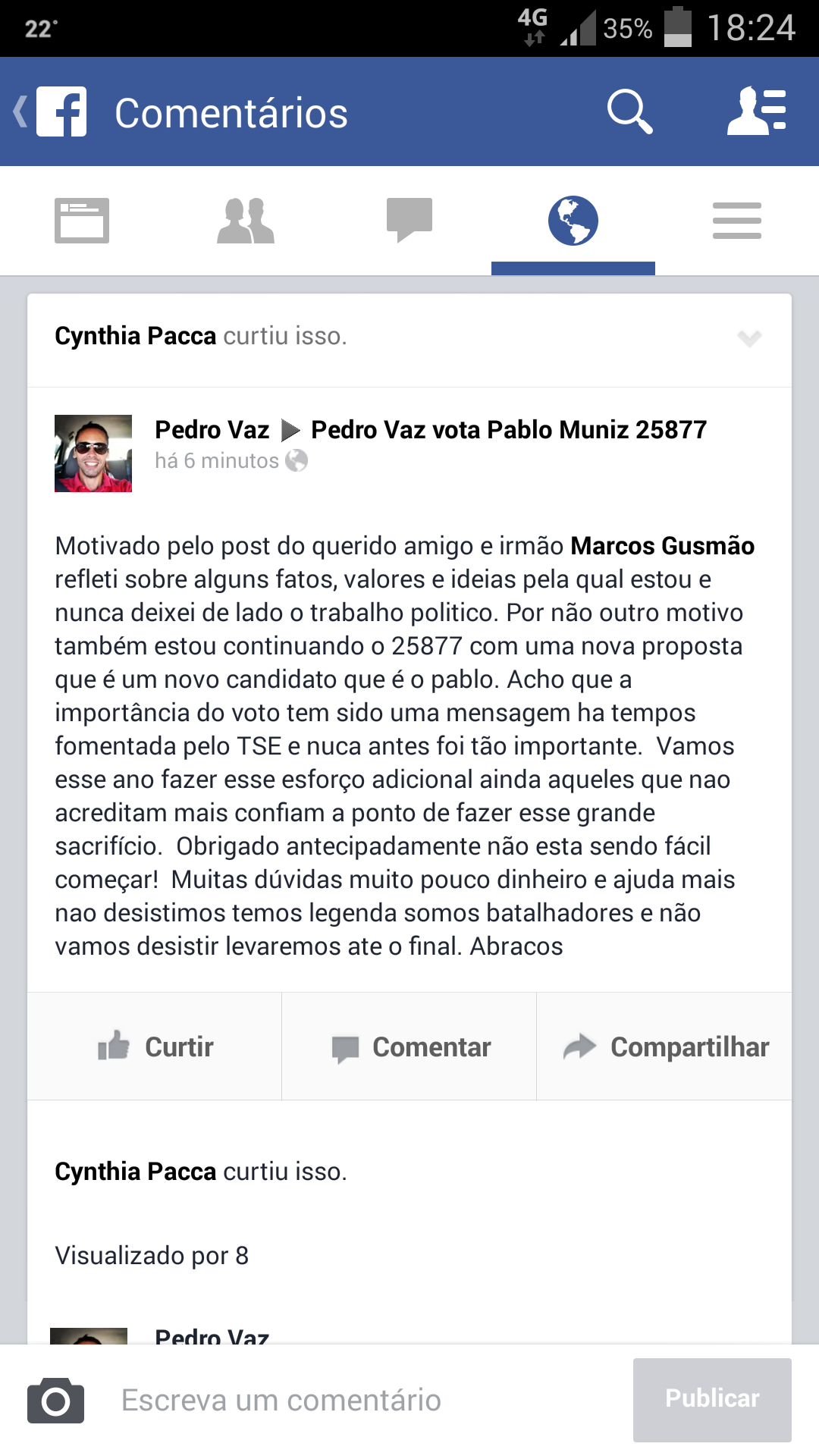 Voto no Pablo Muniz 25877 porque acredito num futuro melhor e diferente. Só depende da gente