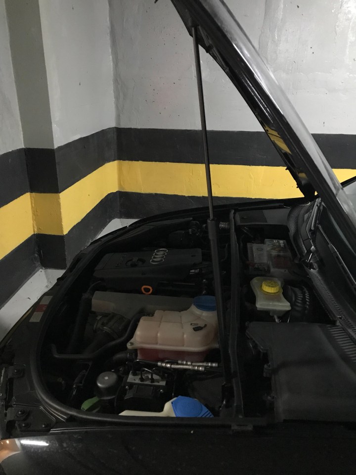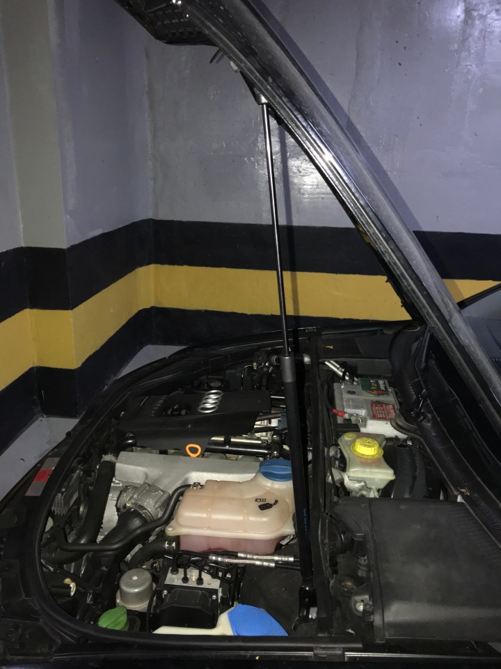 Capô em pé, de pensar quase fui reprovado na vistoria… virei a página. Agora fica fácil consertar o carro sem ter que segurar na base do cabo de vassoura ou na mão mesmo.