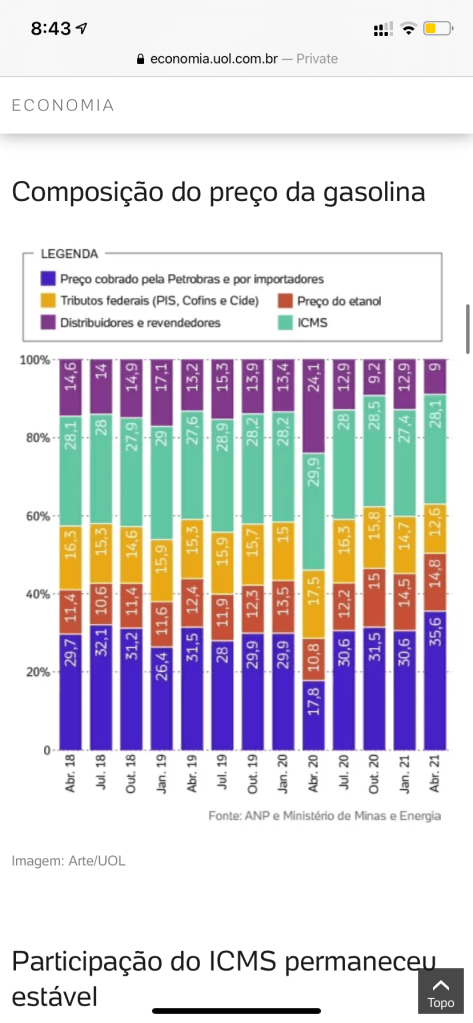 Fato que esse país não é para amador. Bastou o presidente colocar em pauta a discussão sobre a liberação dos impostos que li uma reportagem com um quadro justificando a eventual falta de importância e peso do icms na gasolina.